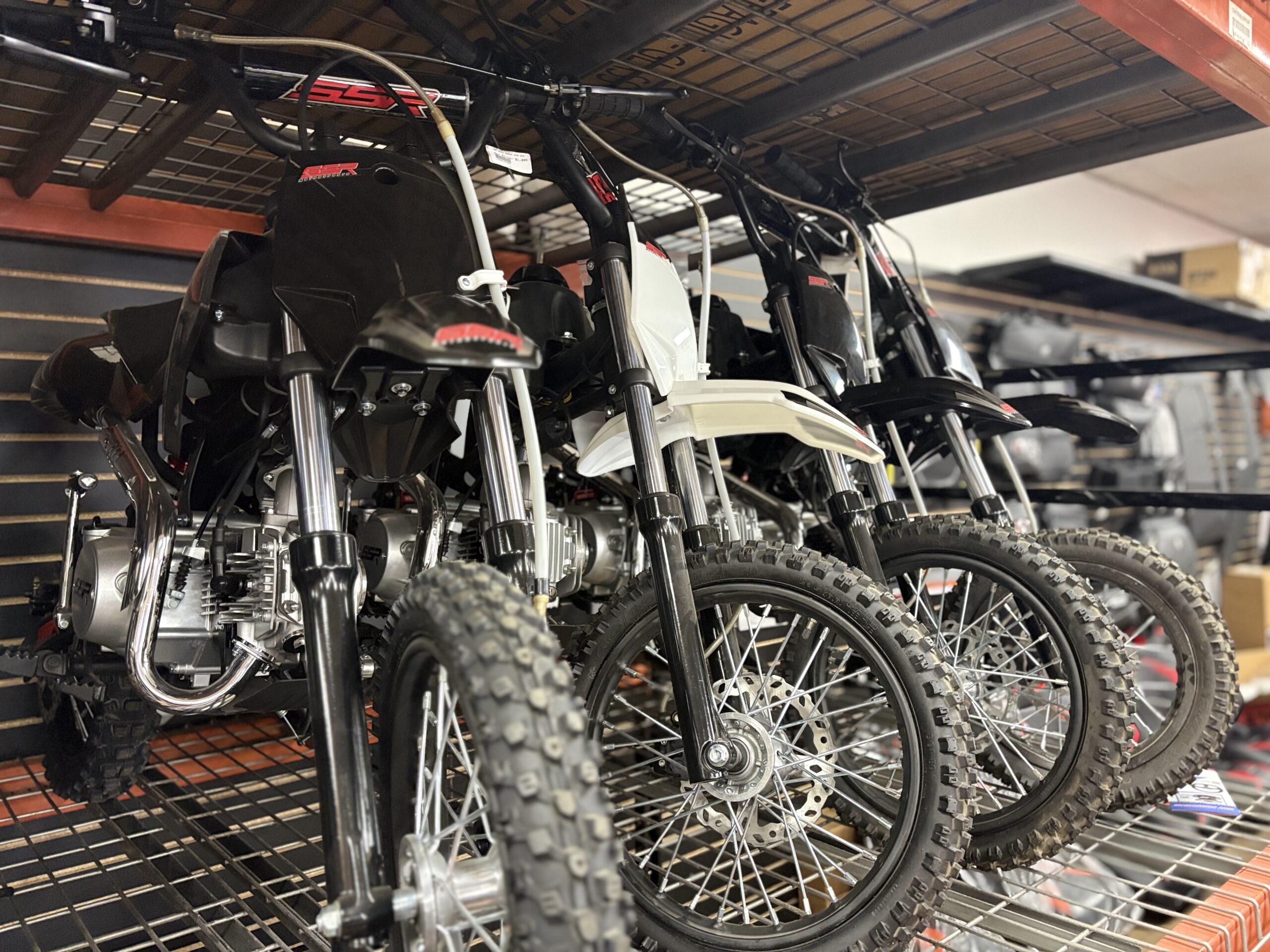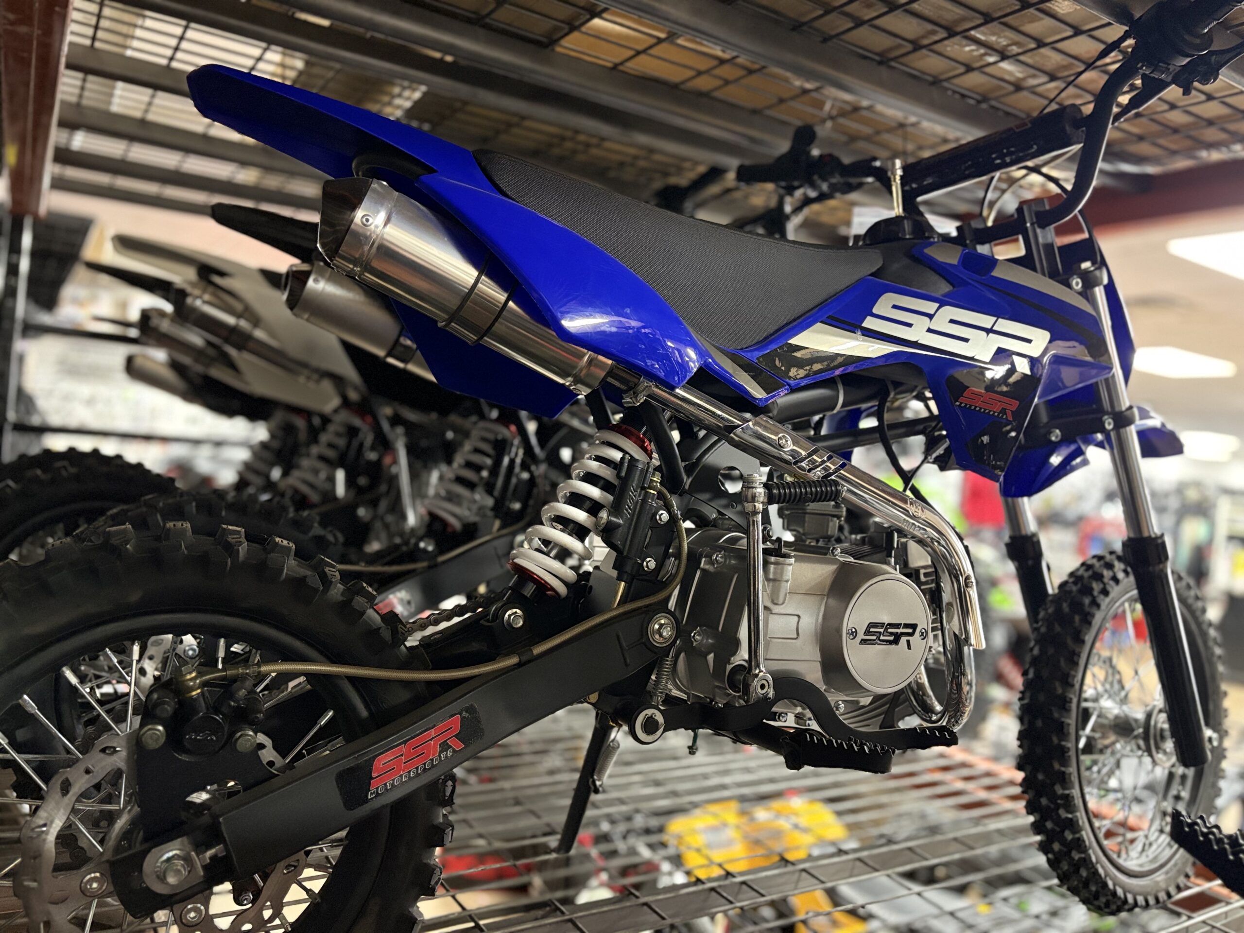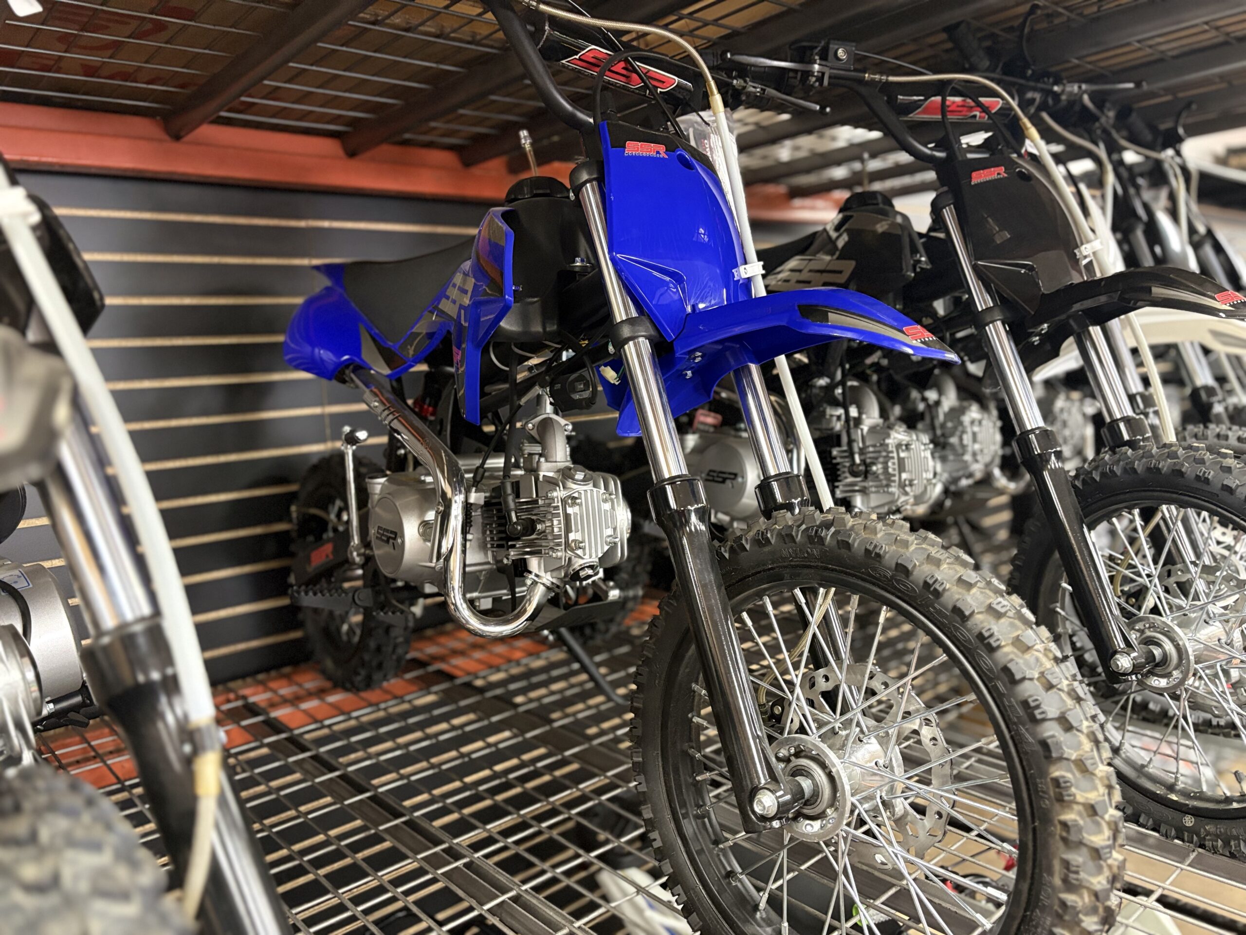 The SSR Motorsports SR125 is a 124cc air-cooled, 4-stroke pit bike, commonly producing 7.3–8.5 horsepower. It features a 4-speed manual (or semi-auto) transmission, 22mm carburetor, and 14/12-inch wheels. Designed for off-road use, it features a steel backbone frame, hydraulic disc brakes, and a kickstart.
